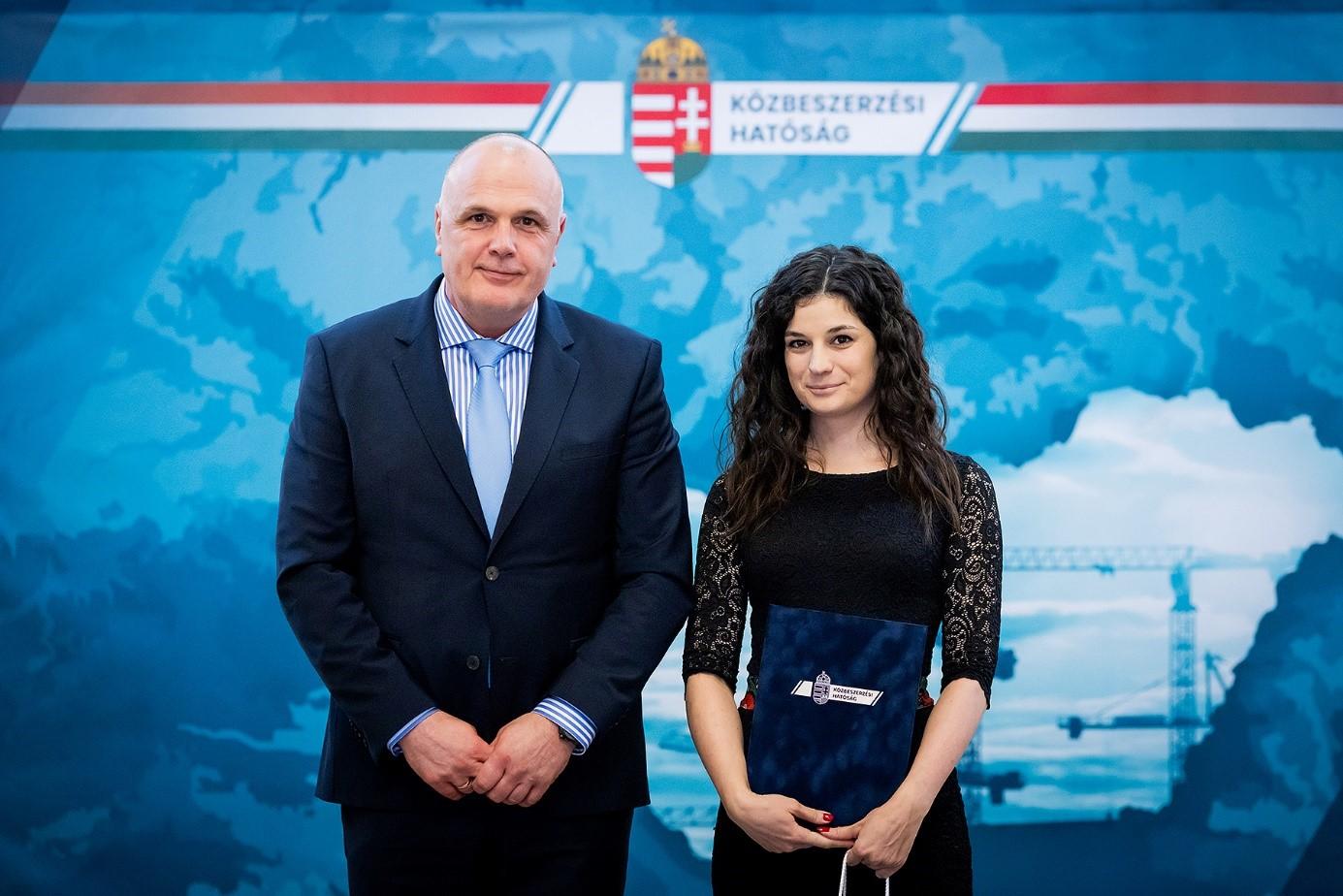A Közbeszerzési Hatóság a kiemelkedő színvonalú közbeszerzési szakmai munkásság elismerése végett átadta okleveleit. A Hatóság a „Közbeszerzési Kiválósági Díj – 2025” közbeszerzési szaktanácsadók számára meghirdetett pályázaton I. díjat ítélt oda tudományos munkatársunknak, Ripszám Dórának a közbeszerzési jogi aktualitások témakörében benyújtott pályázatáért. A díjat a Közbeszerzési Hatóság elnöke és a Közbeszerzési Döntőbizottság elnöke adta át.